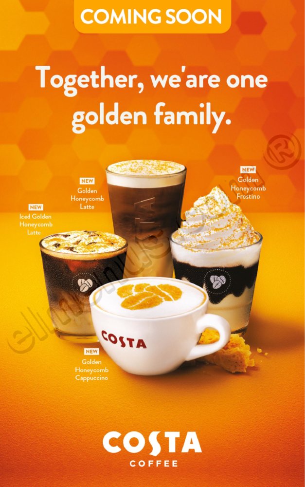 Golden Caramel Frostino with Light Dairy Swirl. Check our Allergen Information or ask a Costa Coffee team member each. Below you will find a set of tables that include every menu item available at this restaurant.