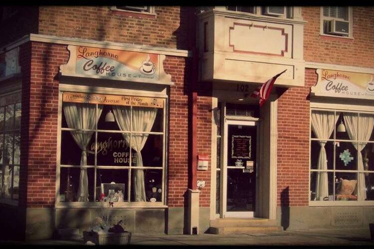 The Langhorne Coffee House is located at the corner of Maple and Bellevue in Historic Langhorne. 102 South Bellevue Avenue Langhorne PA 19047.
