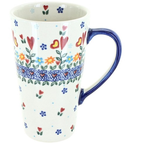 Blue Rose Polish Pottery Hearts Flowers Large Coffee Mug Target